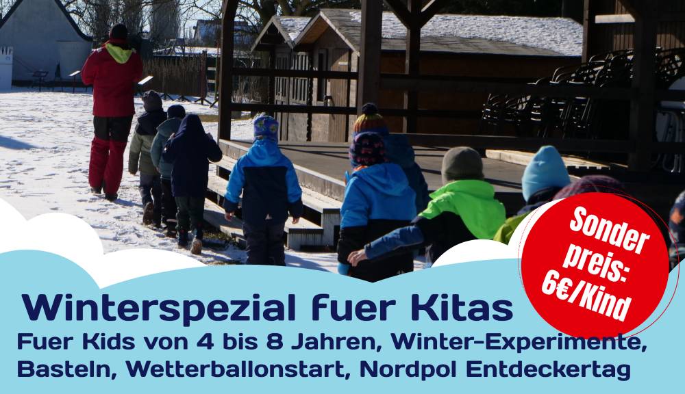 Winterprojekttage für Kitas im Wettermuseum: Kleine Winterwetterfans aufgepasst: Im Winter ☃️ bieten wir wieder frostige Projekttage rund um das faszinierende Winterwetter ❄️ an: Im Advent können bei uns kleine Geschenke gebastelt werden. Dazu bieten wir spannende Experimente über Schnee und Eis 🧊 und wie letztes Jahr den Nordpolentdeckertag 🌐 mit Eisbär Pascal 🐻❄️. Also, Mütze und Schal einpacken und ab ins Wettermuseum!