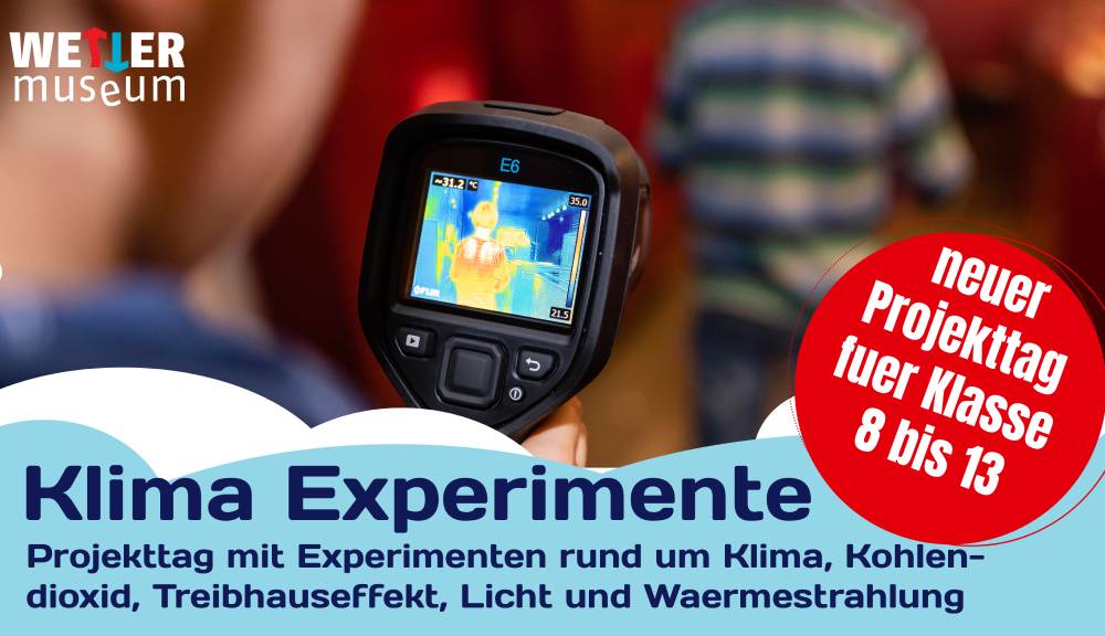 Neuer Klima-Experimente Projekttag im Wettermuseum! Lehrer:innen und Schüler:innen aufgepasst: Ab sofort bieten das Wettermuseum einen Projekttag für die Klassen 8 bis 13 voller Experimente rund um den Klimawandel 🌡️. Dabei erforschen und messen wir z. B. die Rolle von Kohlendioxid beim Treibhauseffekt und untersuchen die Auswirkungen der Ozeanversauerung 🌊. Ein Tag voller spannender Fragen mit einem Fokus auf der Physik und Chemie des Klimawandels 🔬🧪.
