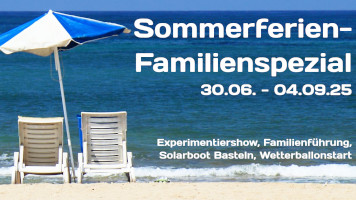 In der Sommerferienzeit vom 30. Juni bis 04. September 2025, immer Montags bis Donnerstags von 10:00 bis 14:00 Uhr bietet das Wettermuseum ein spannendes Familienprogramm rund um Wetter, Sommersonne und Klima für Jung und Alt. Mit spannenden Experimenten erklären wir euch die Geheimnisse der Physik von Wolken, Wind und Wetter. Zusätzlich gibt es täglich eine Familienführung für Jung und Alt und ein Sommerwetter-Bastelangebot für Kids.